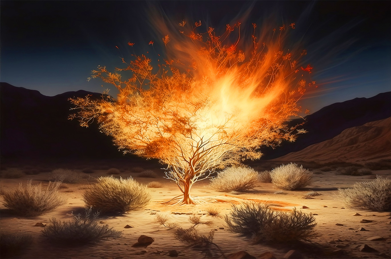 One day while minding Jethro's sheep in the back side of the desert, God grabbed his attention through the unlikely scene of a bush that appeared to be on fire, but was not burning. Intrigued by the strange sight, he turned aside to see what was going on and heard a voice speaking to him from the bush.