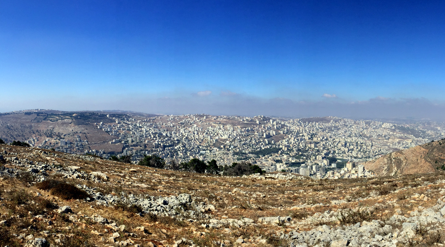 View from Mount Ebal overlooking Shechem to Mount Gerizim Photo: My Israelite Guide