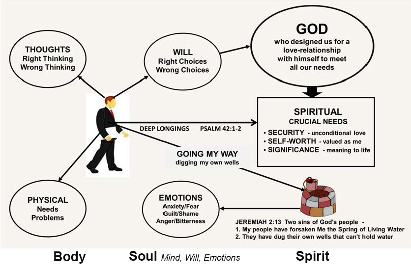 God has designed us with three crucial needs as can be seen from the diagram above, which are SPIRITUAL in nature. These are for: