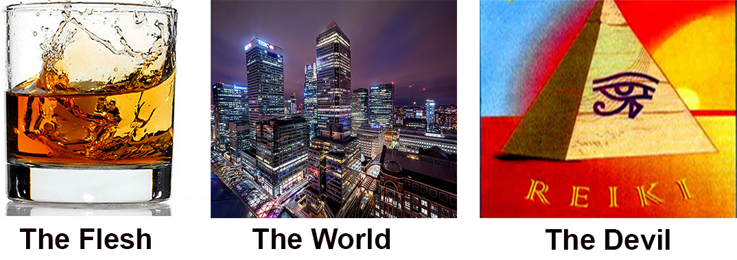 The Bible (1 John 2:15-16) talks of three levels of spiritual warfare being waged against human beings -