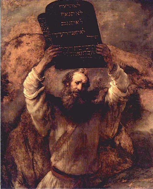 Moses smashing the stone tablets Painting by Rembrandt Gemaldergallerie, Berlin